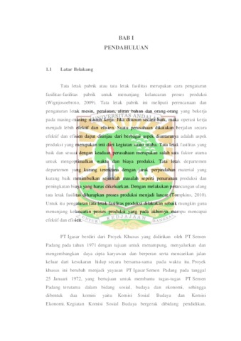 Perancangan Ulang Tataletak Fasilitas Pabrik Pada PT IGASAR Kota Padang